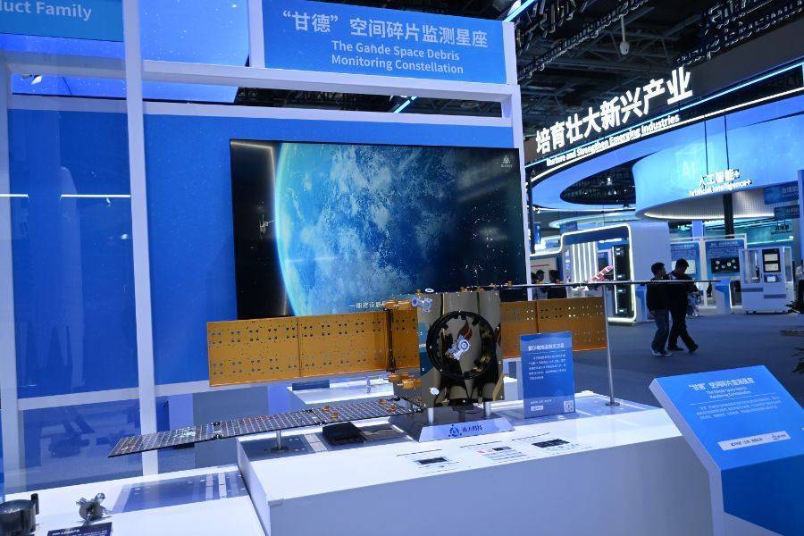 在新兴的太空服务领域,遨天科技展出了我国首个商业化运行的天基空间碎片监测系统——“甘德”系列卫星星座。该系统致力于实现全时全域空间目标探测,为航天器安全运行提供轨道护航与精准预警,进而支撑国家太空交通管理和空间安全体系建设。