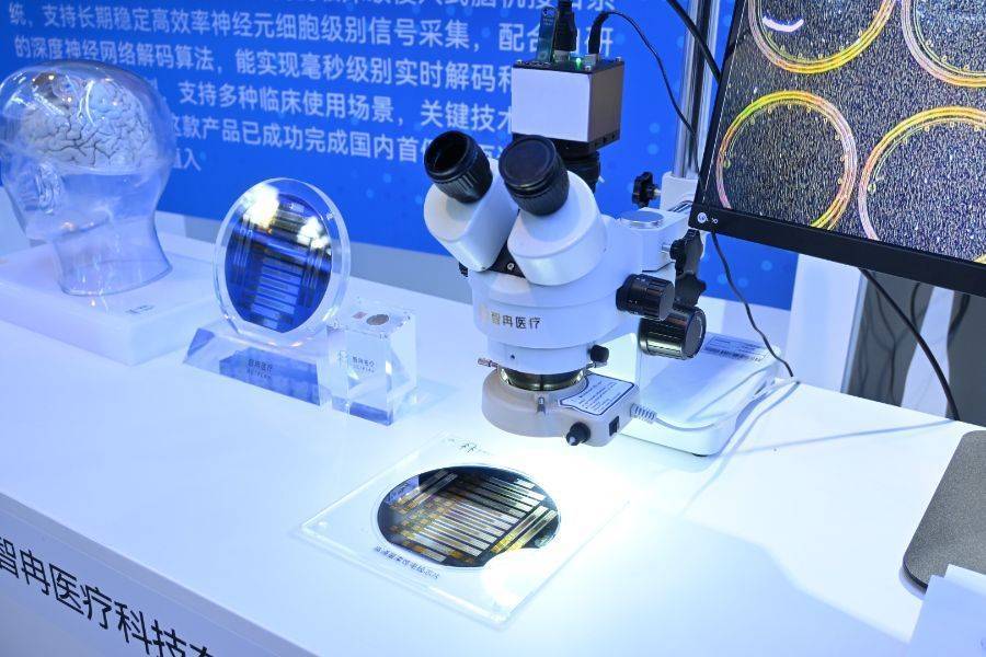 据智冉科技工作人员介绍,展出的微米级设备采用了国际领先的高通量柔性可拉伸电极,整体直径仅为头发丝的几十分之一。这种柔性可拉伸设计直接解决了传统硬质电极易从脑组织中脱出、导致信号不稳定的核心行业痛点,确保了在患者体内长期、安全且有效的高质量神经信号采集。